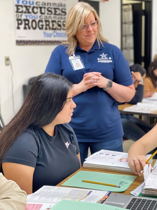 On March 31, 2023, Superintendent Dr. Shepherd and District Medical Consultant Dr. John McNeill assisted Career and Technical Education Health Science Teacher Rachel Lowrey with a Medical Mystery lesson for students in Health Science classes at the Career and Technical Institute (CTI).